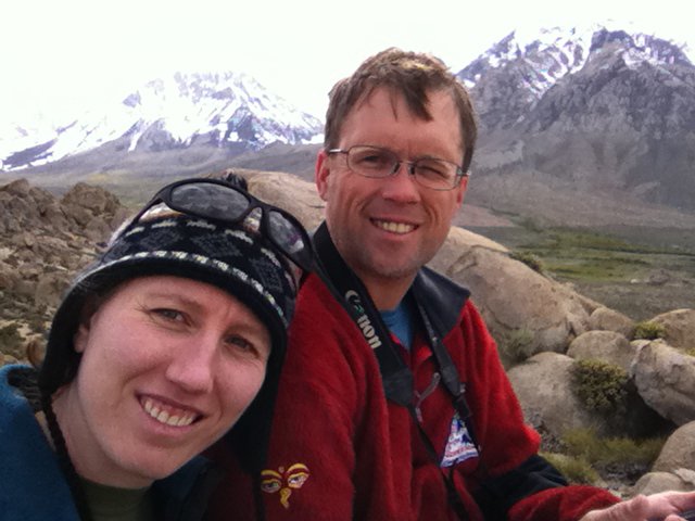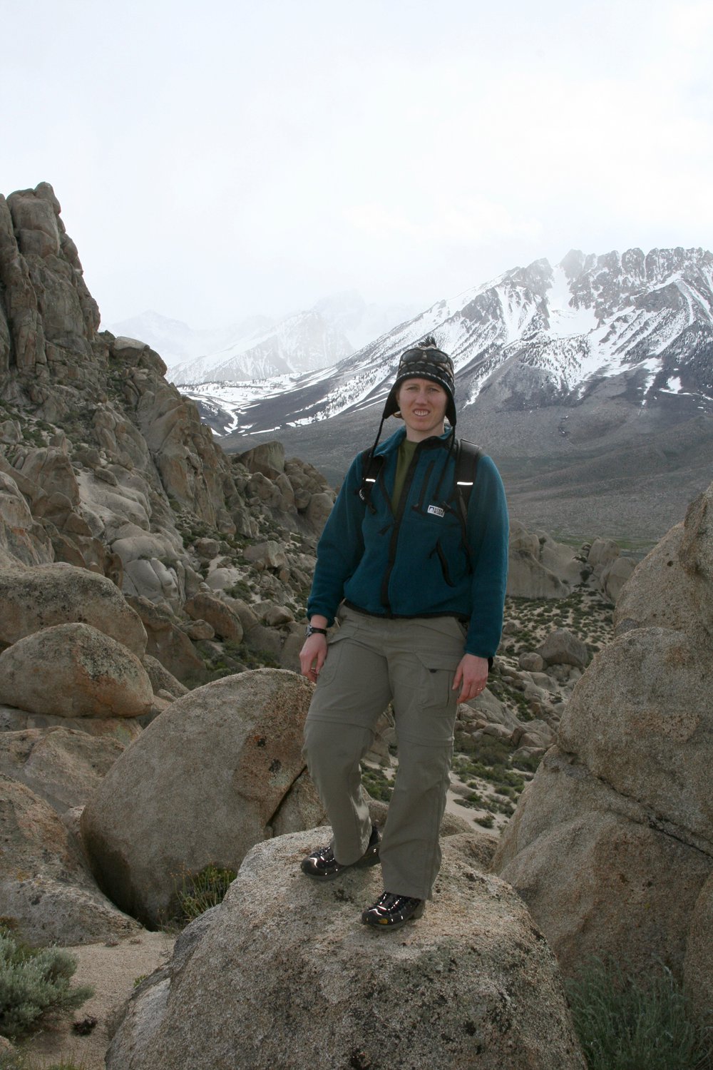 From the top we had some great views of the White Mountains on the other side of the valley, as well as the mountains behind us. And the climb had been non-technical enough that even chicken me had enjoyed it! It would have been great to have stayed and explored a bit more, but we had to head into Bishop so that I could get online for work again, so after soaking up the view for a while we headed down again. Going down was much faster than going up!! We just slid down the scree/sandy slope – it reminded me of descending down the scree slopes of Mt. Kilimanjaro in 2007 with Katie and Carson.
